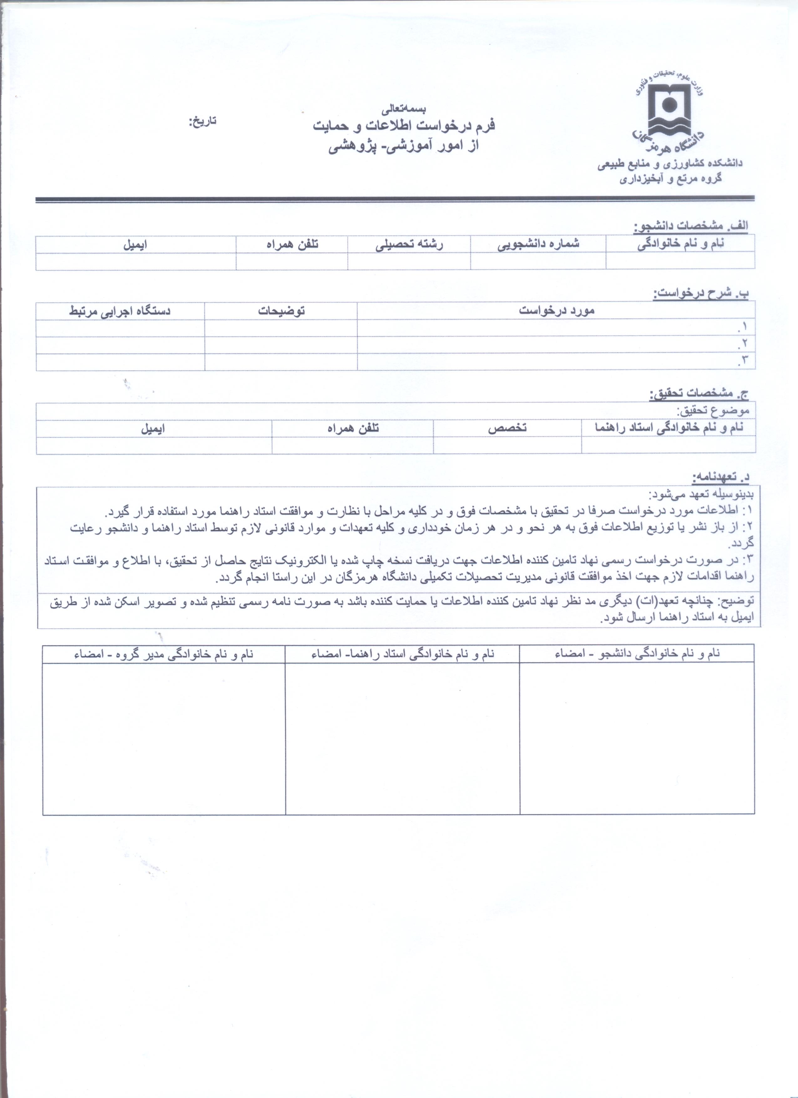 فرم درخواست داده از ادارات خارج ازدانشگاه(1603)